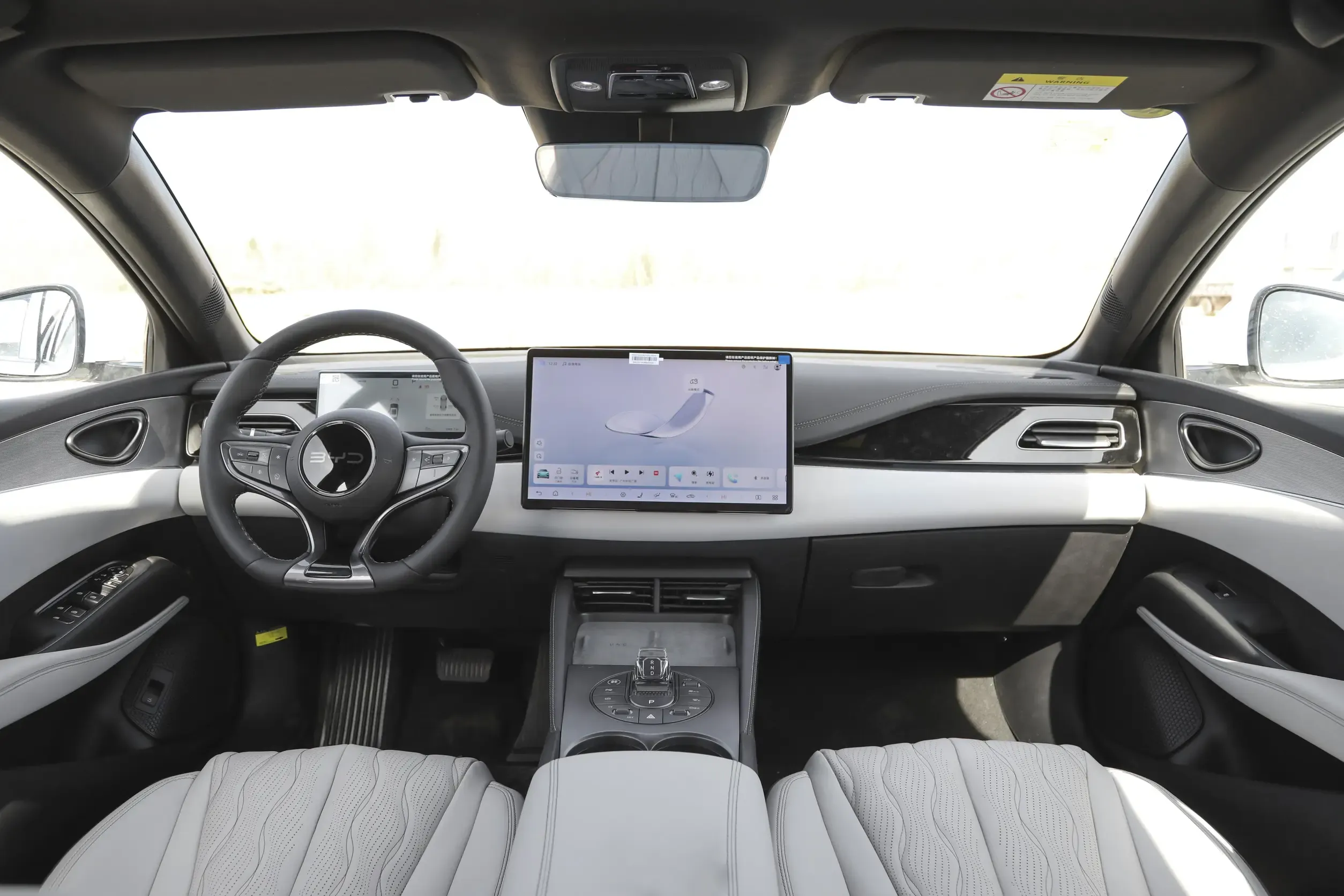 Установлен поворотный дисплей: 12,8 дюйма в базе и 15,6 дюйма в топовых комплектациях. Цифровая приборная панель дополняет экосистему, а система DiLink обеспечивает интеграцию со смартфоном и доступ к различным сервисам, включая караоке.