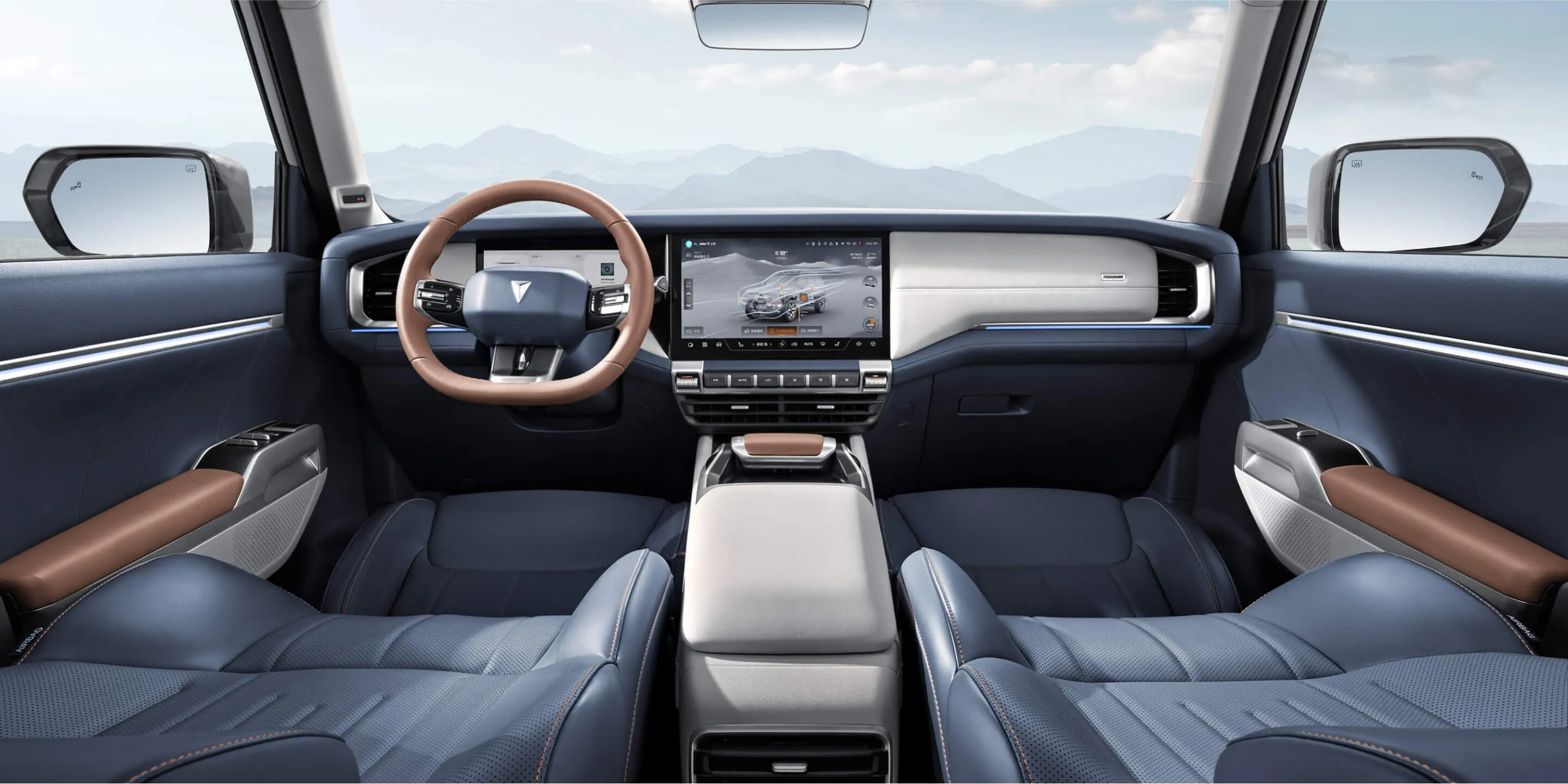 Новый Changan Deepal G318 - гибридный внедорожник с брутальным дизайном и неплохими ходовыми характеристиками: Габариты автомобиля составляют 5010 мм в длину, 1985 мм в ширину и 1895 мм в высоту при колесной базе 2880 мм. Угол въезда — 27°, угол съезда — 31°, 16 режимов движения (5 для бездорожья), передняя подвеска на двух рычагах, задняя - на пяти.