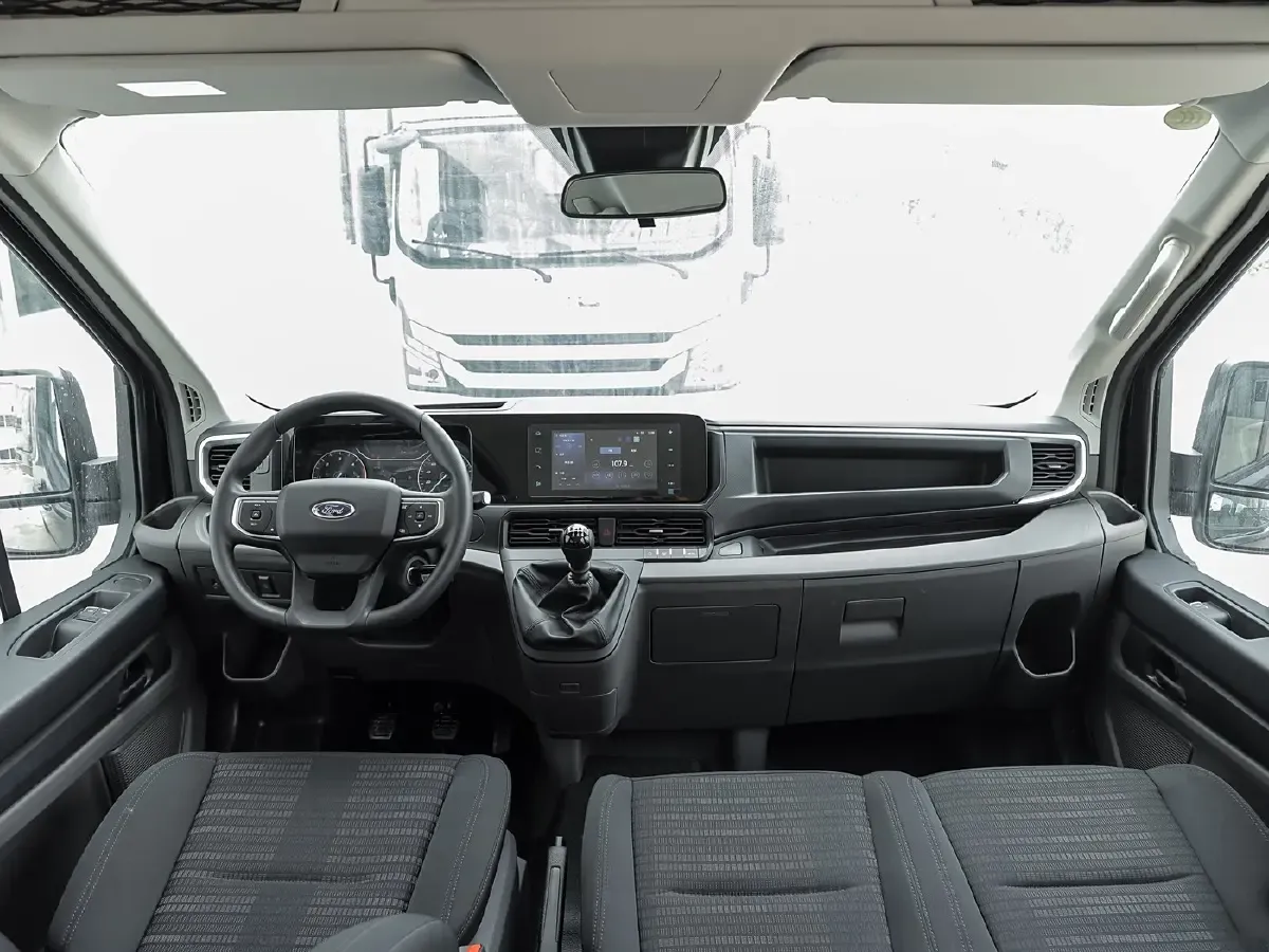 Салон Ford Transit T8 продуман до мелочей и ориентирован на удобство водителя. В современных версиях устанавливается 12-дюймовый сенсорный экран с поддержкой Apple CarPlay и Android Auto. Доступны конфигурации с шестью посадочными местами.