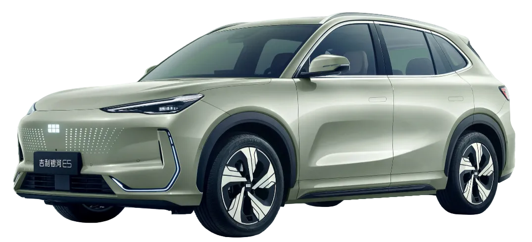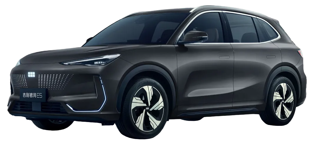 Geely Galaxy E5 — это компактный электрический кроссовер с самым современным оснащением. Автомобиль доступен в пяти комплектациях: Sailing, Discovery, Long-distance, Exploration+ и Starship. Запас хода варьируется от 440 до 530 км в зависимости от комплектации. Используется литий-железо-фосфатный аккумулятор. Основной акцент сделан на цифровую экосистему, основанную на Flyme Auto. Прежде всего авто ориентировано на жителей мегаполисов.