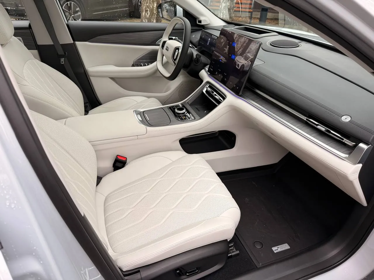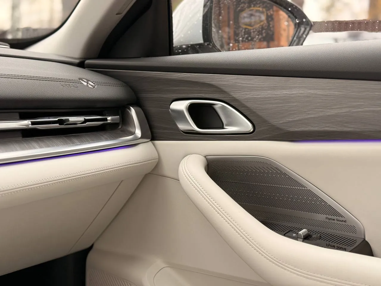 Салон оснащён 15,4-дюймовым центральным экраном с разрешением 2.5K, 8,8-дюймовой цифровой приборной панелью и проекционным дисплеем. Мультимедийная система Flyme Auto от Meizu работает на базе Galaxy NOS с поддержкой Android Auto и CarPlay.