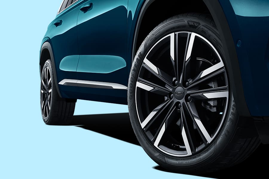 Экстрерьер Monjaro - это осознанный баланс сдержанной агрессивности. Передняя часть с более выпуклой решеткой радиатора и вертикальными ламелями придает автомобилю по-настоящему монументальный вид. Обновленный логотип 2025 года стал более белым, без черной окантовки. Эксперты отмечают, что в целом внешность авто напоминает хищника перед нападением. Профиль с 20-дюймовыми колесами (245/45 R20) подчеркивает спортивные амбиции авто. В палитре 2025 года появился новый зеленый цвет кузова.