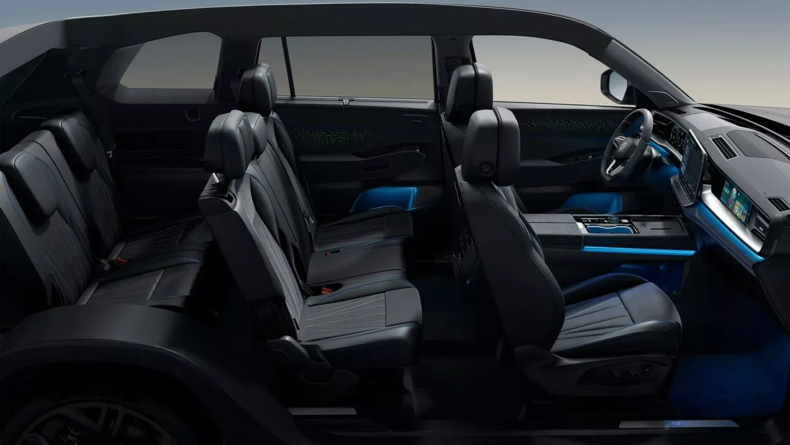 Салон — просторный, рассчитан на три ряда сидений: электропривод и массаж, память настроек, вентиляция и подогрев — доступны для передних кресел, задние складываются (второй ряд — 60/40, третий — 50/50). Кожаная отделка, большой центральный дисплей 15″, мультимедиа с поддержкой Apple CarPlay, HUAWEI HiCar, CarLife и даже Wi-Fi/5G. Подсветка салона — многоцветная. В отдельном пассажирском блоке — экран 11,6″. Трёхзонный климат-контроль, электропривод багажника, панорамная крыша, разъёмы для зарядки и беспроводное питание смартфона — все на высшем уровне. Внимание к деталям ощущается буквально во всём — от регулировки до материалов отделки. В салоне: