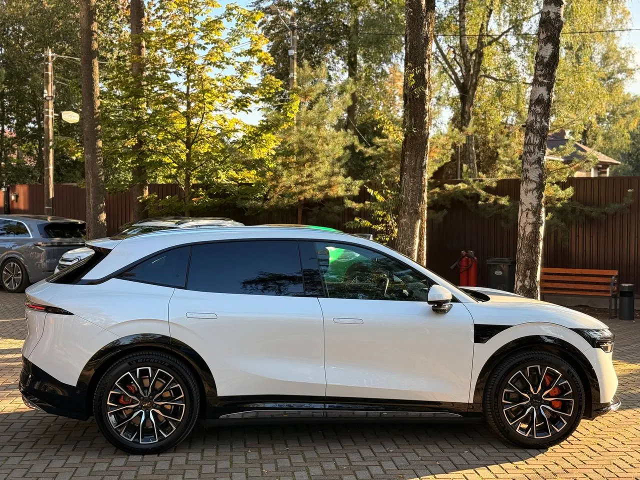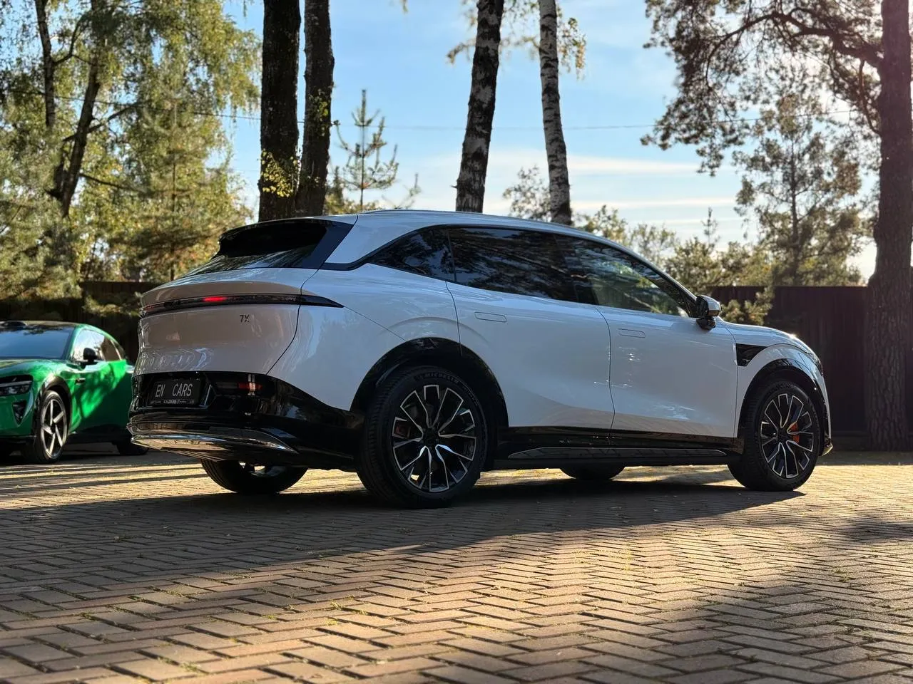 Zeekr 7X выделяется своим стильным и аэродинамическим дизайном. Передняя часть автомобиля украшена узкими светодиодными фарами и крупной решеткой радиатора, что придает ему агрессивный и современный вид. Линии кузова плавные и динамичные, что подчеркивает спортивный характер автомобиля. Доступны различные варианты цветового оформления и колесных дисков, что позволяет покупателям настроить внешний вид в соответствии с их предпочтениями.