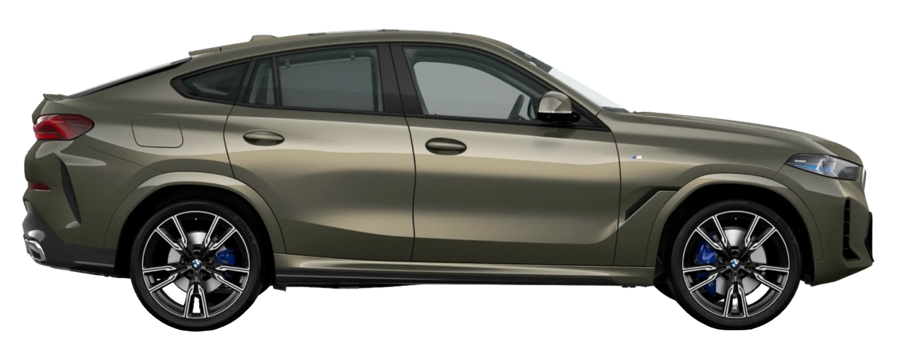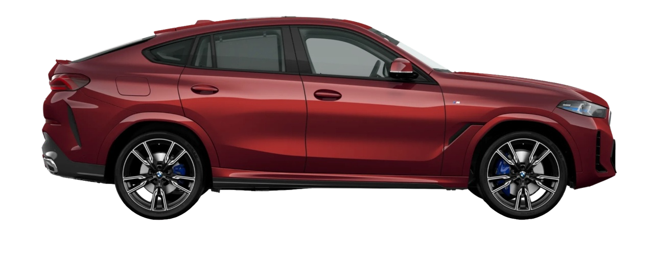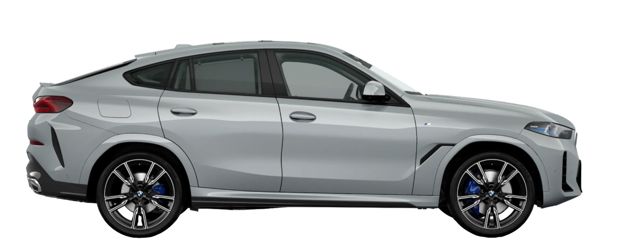 BMW X6 2023 года — это премиальный кроссовер-купе с динамичным стилем и современным оснащением. Доступны три версии: BMW X6 xDrive30i M Sport, BMW X6 xDrive40i M Sport, BMW X6 xDrive40i Exclusive M Sport. Автомобиль отличается внушительными габаритами: длина более 4,95 м, ширина около 2,0 м. Колёсная база увеличена до 2975 мм, а выразительная внешность в стиле M Sport подчеркивает энергичность и статус. BMW X6 предлагает полный набор современных систем безопасности, при этом каждая версия имеет свои особенности. Мощность: xDrive30i M Sport — 258 л.с. (2,0 л, турбо), xDrive40i M Sport — 381 л.с. (3,0 л, турбо, mild hybrid). Разгон до 100 км/ч занимает 7,1 секунды (30i) и 5,7 секунды (40i). Обе версии оснащены 8-ступенчатой АКПП и полным приводом xDrive. Расход топлива в смешанном цикле — от 8,2 до 8,4 л/100 км. Объём багажника — 776 л (30i) или 580 л (40i), а при сложенных сиденьях увеличивается до 1688 л или 1530 л соответственно. Узнаваемый силуэт купе, передовые технологии и премиальный статус делают BMW X6 крайне привлекательным выбором. Модель успешно конкурирует с Mercedes-Benz GLE Coupe, Audi Q8 и Genesis GV80, предлагая фирменную динамику и роскошь BMW.