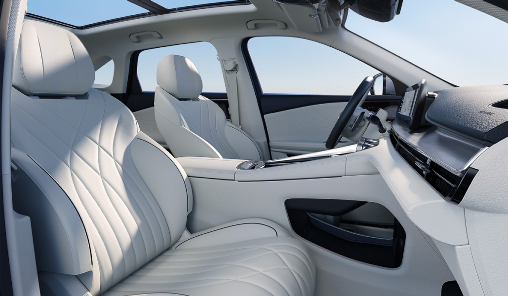 Четырехзонный климат-контроль оснащен ионизатором nanoe™ и фильтрацией PM2.5. Панорамный люк с электроприводом и 64-цветная подсветка также в наличии.