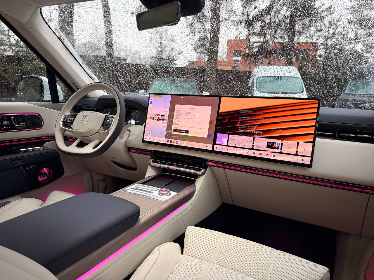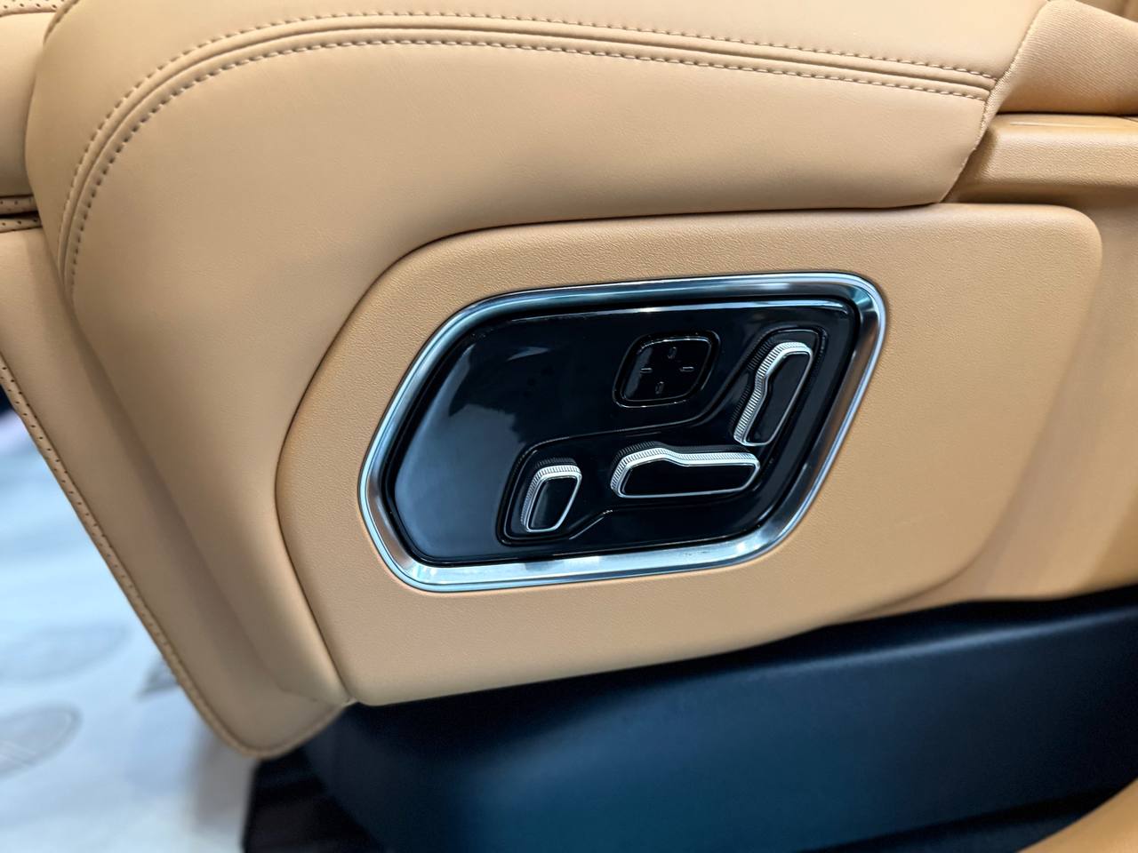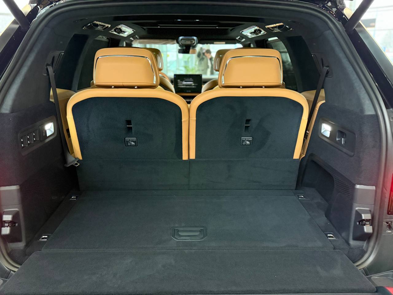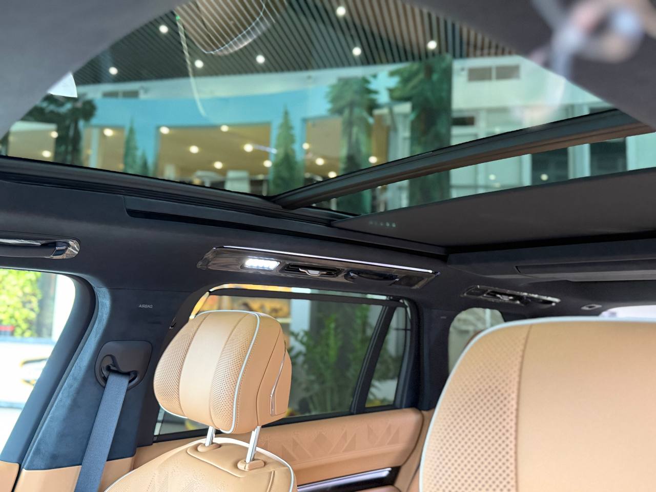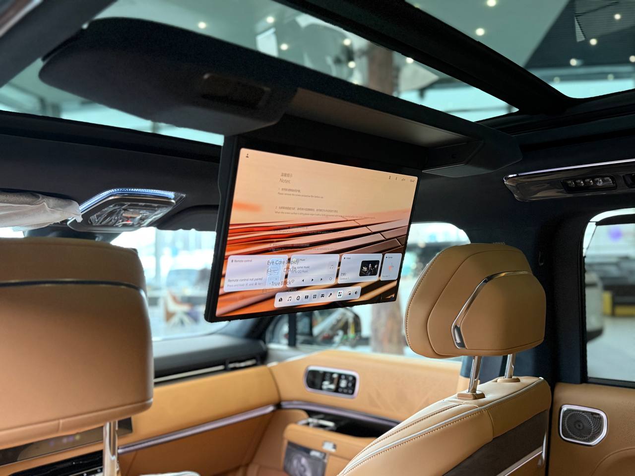 Салон выполнен в стиле «сдержанной роскоши» с отделкой из натуральной кожи Nappa, деревянным шпоном и алюминиевыми вставками. Компоновка 2+2+2 рассчитана на шесть посадочных мест. Второй ряд оснащён креслами Zero Gravity с режимом «невесомости»: электроприводные подлокотники и индивидуальный массаж уровня SPA. Для развлечений пассажиров заднего ряда в потолок встроен откидной 15,6-дюймовый дисплей. В подголовники передних сидений интегрированы динамики. Центральная консоль: большой сенсорный экран, несколько физических кнопок, селектор режимов движения и два беспроводных зарядных устройства. Стёкла сзади оснащены электрическими шторками. Трёхзонный климат-контроль поддерживает индивидуальные настройки температуры. Есть ионизатор воздуха с тремя видами ароматов и функцией автоматического включения при усталости. Для энергоэффективного обогрева используется тепловой насос. Мультимедийная система включает премиальную аудиосистему, голосовое управление и интеграцию с мобильными устройствами. Доступны порты USB и Type-C для зарядки гаджетов.